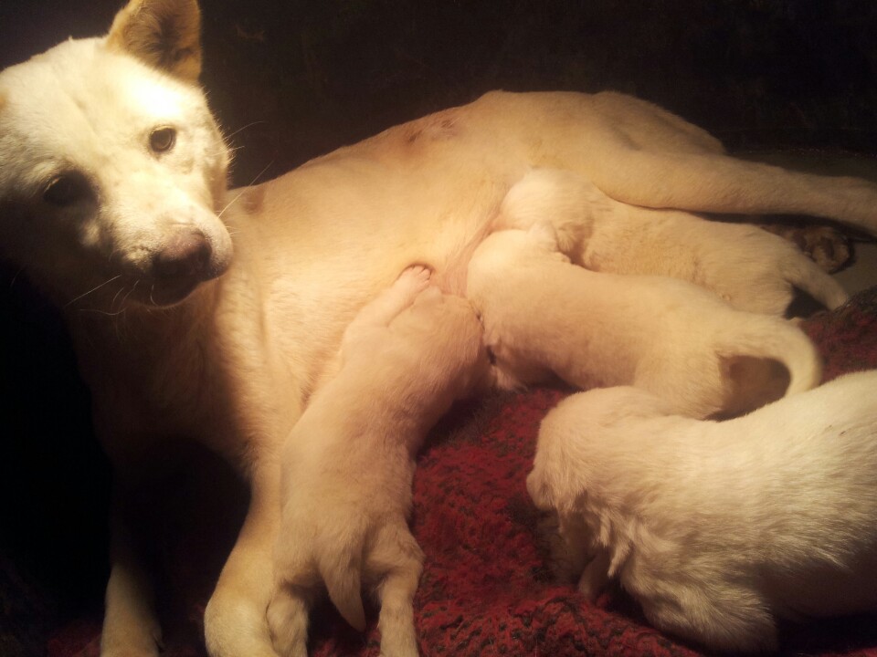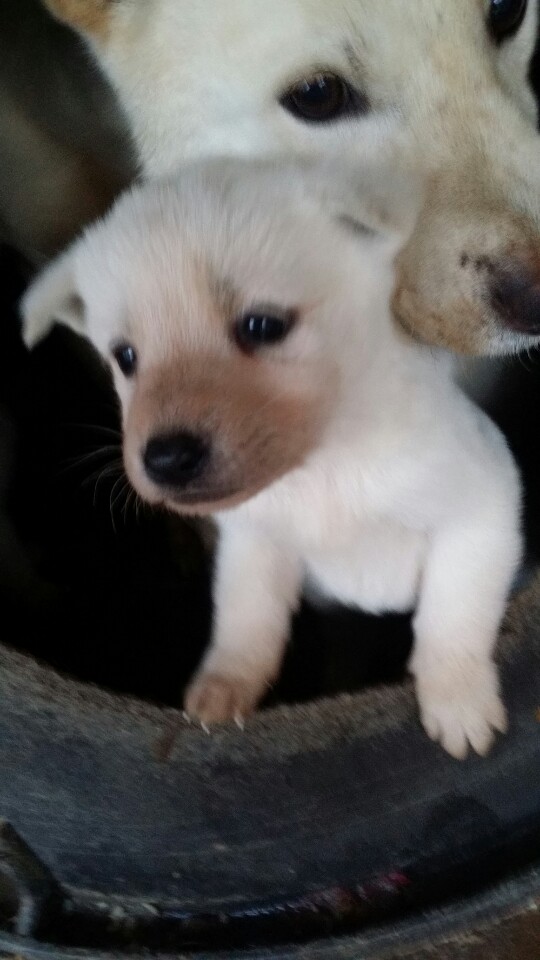 북한 직수입 순종 풍산개 자견 황구가 두마리 나와서 7일 되었네요.