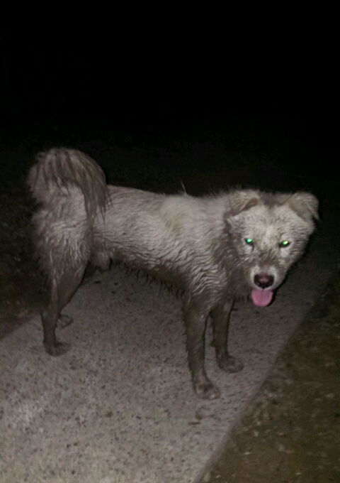 풍산개의 야간 사냥하는 모습을 어둠속에서 희미한 휴대폰 불빛으로 보게 되었습니다.