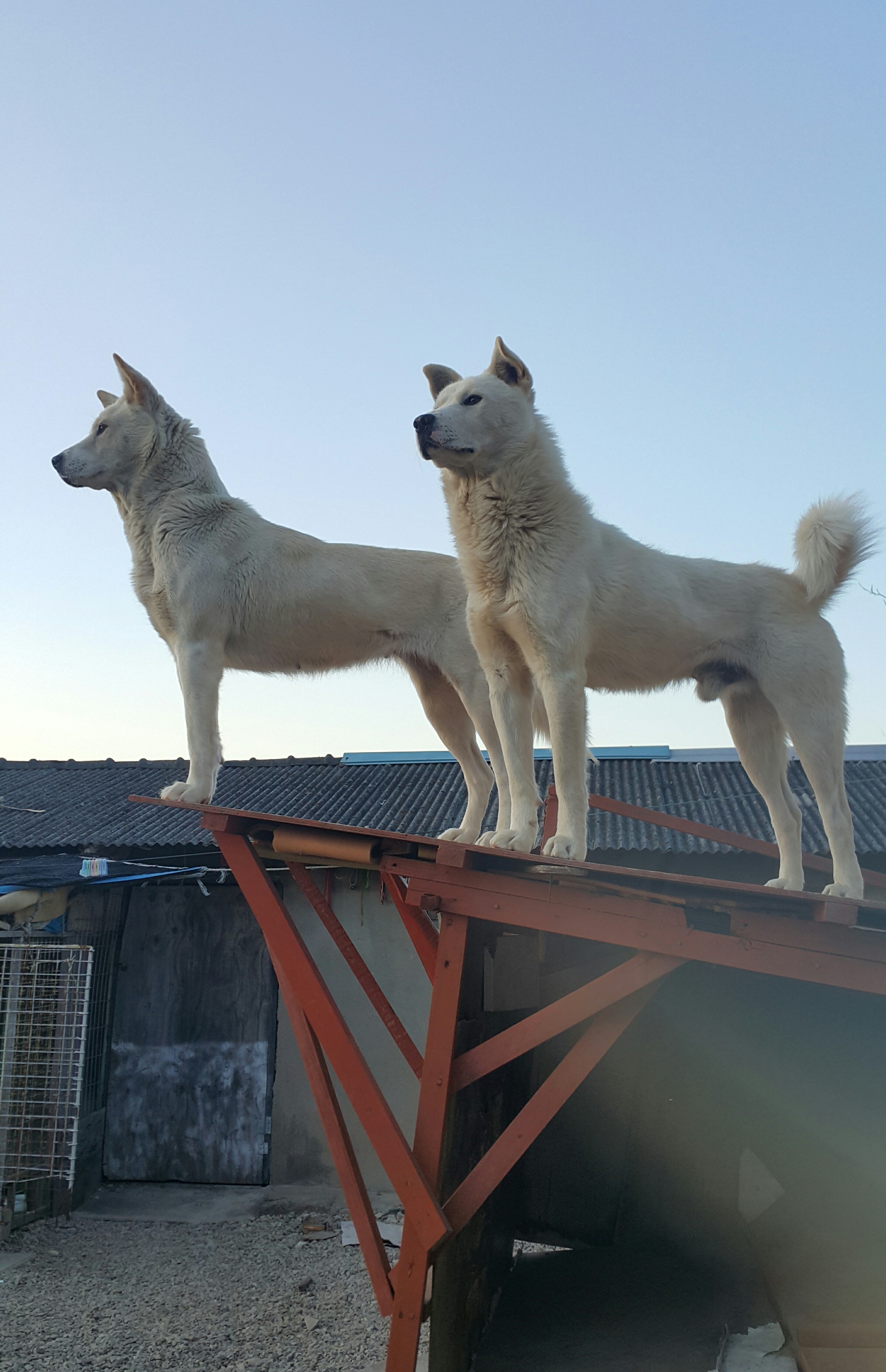 U. S. A. 재미교포 뉴욕 한인 생활체육회 회장님께서 입양하신 순종 풍산개 백구 관우와 황구 다롱이가 ..