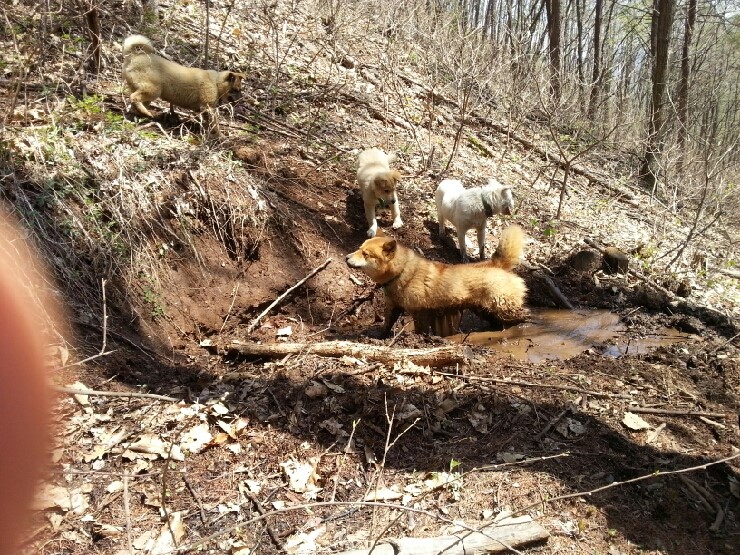 부모견을 따라 산행을 하는대 멧돼지 흔적을 찾는거보니 리얼 풍산개다