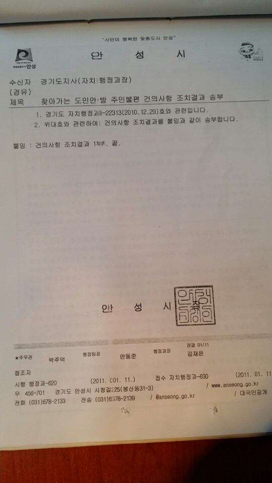 | 제목 | (필독)경기도청 민원(가짜 풍산개)처리 공문서 안성시청 안성 풍산개(계곡) 마을 이장 이기훈씨에게 공문서 발송. (확인해 보세요). | ||